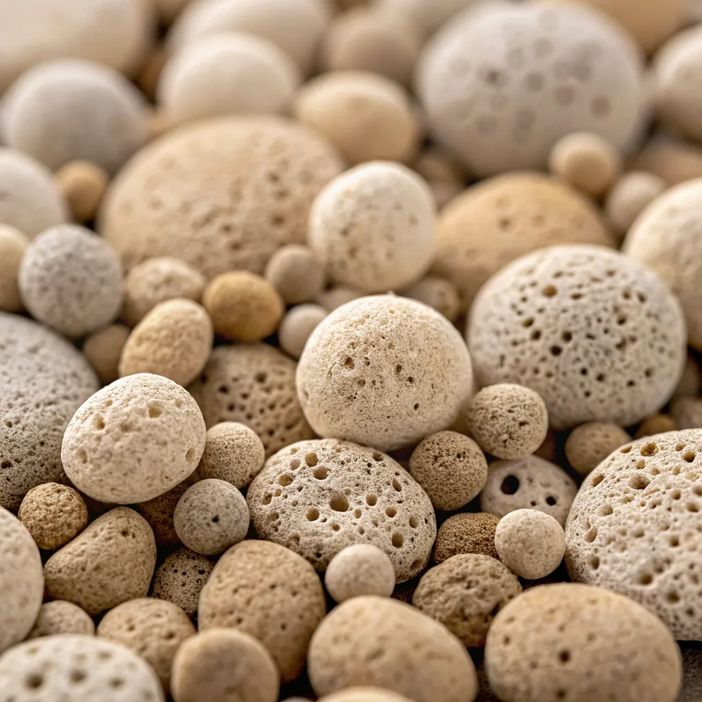 - تخلخل بسیار بالا (Porosity): مهمترین ویژگی پوکه، تخلخل بالای آن است که میتواند تا ۸۵٪ حجم سنگ را تشکیل دهد. این ساختار اجازه میدهد تا آب و هوا بهطور همزمان در ذرات پوکه نگهداری شوند. این خاصیت از خفگی ریشه جلوگیری کرده و امکان تنفس ریشه را حتی در زمان اشباع بودن خاک از آب فراهم میسازد.